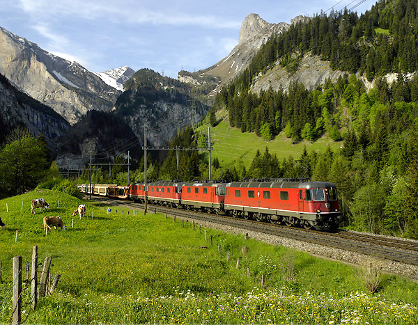 26.Mai 2006 nach Auffahrt: Berits am früh Morgens um acht tauchte dieser Leerzug mit 2x Re 10/10 aus dem