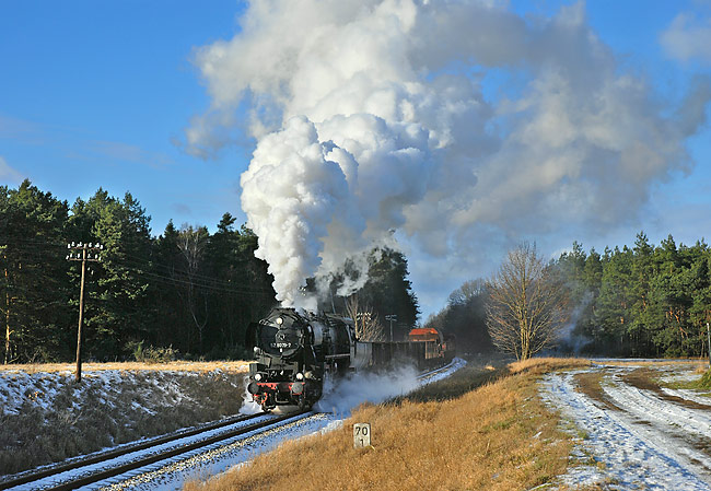 zwischen Oderbruch und Mark Brandenburg zurück. Das Bild zeigt 52 8079 bei