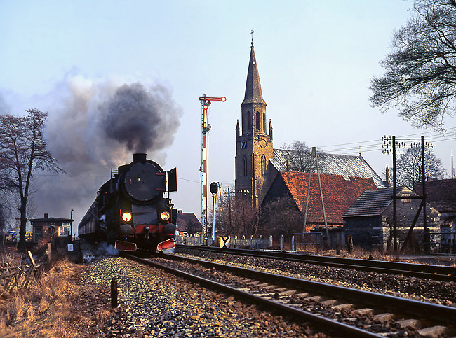 Längst sind direkte Züge nach Königsberg und Insterburg Vergangenheit, die Maedel in seinem Buch beschreibt, ebenso wie die Grunewalder S101 und 03, welche damals mit Schnell- und Eilzügen durch die Mark Brandenburg und Pommern rauschten. Durch die Grenzziehung und die politischen Realitäten nach dem Krieg fiel die Ostbahn in die Bedeutungslosigkeit. Dennoch: Doppeltelegrafenmasten beidseits der Strecke, Blockstellen, Preussische Backsteinarchitektur, Stellwerke und Flügelsignale auf jedem Unterwegsbahnhof - noch mitte Neunzigerjahre war all dies auf der Ostbahn zwischen Kostrzyn und Kryz zu erleben. Was wäre, wenn man König "Dampf" auf die alte Ostbahn bringen könnte, fragten sich engagierte Eisenbahnfreunde und liessen ein ambitiöses Programm entstehen.