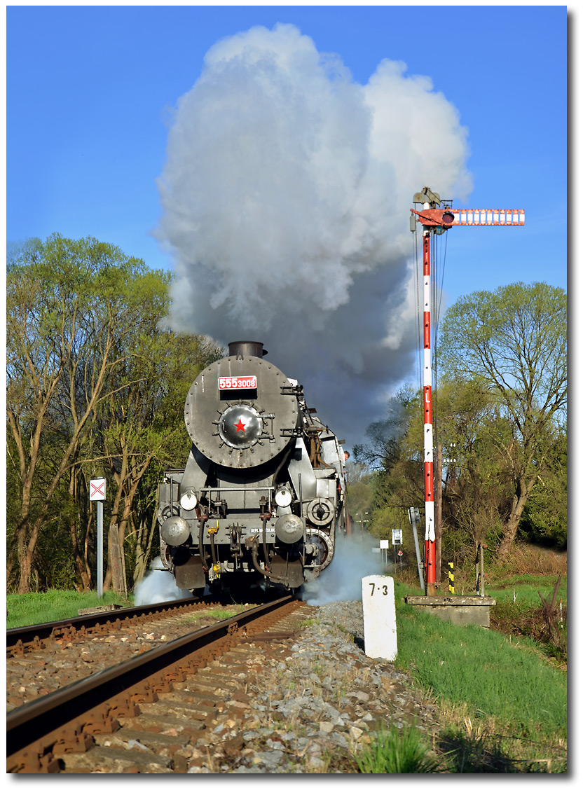 Dobre rano Mazutka - Good Morning Mazutka! Das Bild mit der ölgefeuerten 555.3008 entstand anlässlich einer LoRie-Veranstaltung bei Gasparovo in der Slowakei, 28.04.2012.
