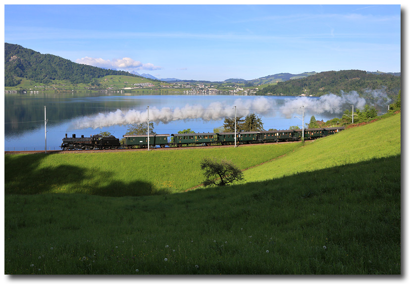 Wölkchen über dem Pilatus in Hintergrund haben sich verzogen. Dann plötzlich ein ein Röhren und ein Rauschen