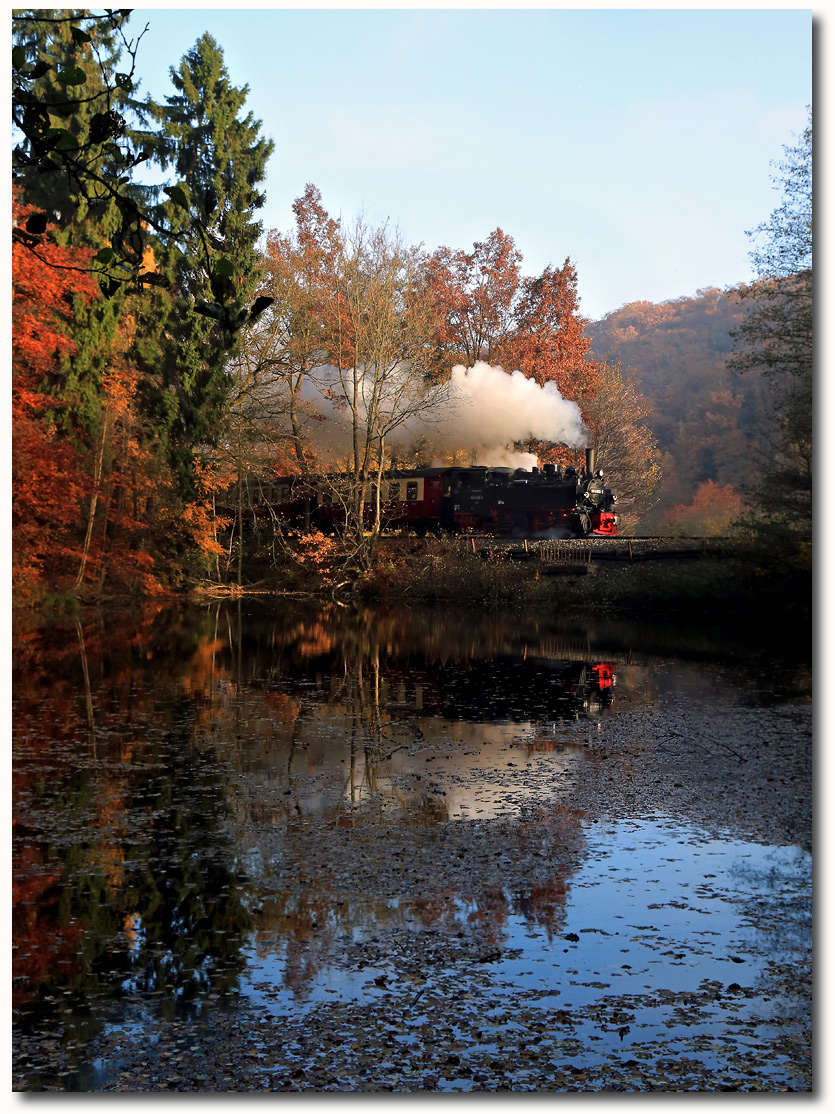 99 5906 passiert den Heiligen Teich im Wellenbachtal. Der