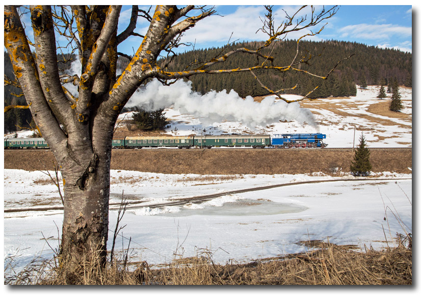 Parrot in the "Slovakian Paradise": Elegantly and without difficulty, 477.013 pulls an express train up to the summit of the Brezno-Margecany line at 930m