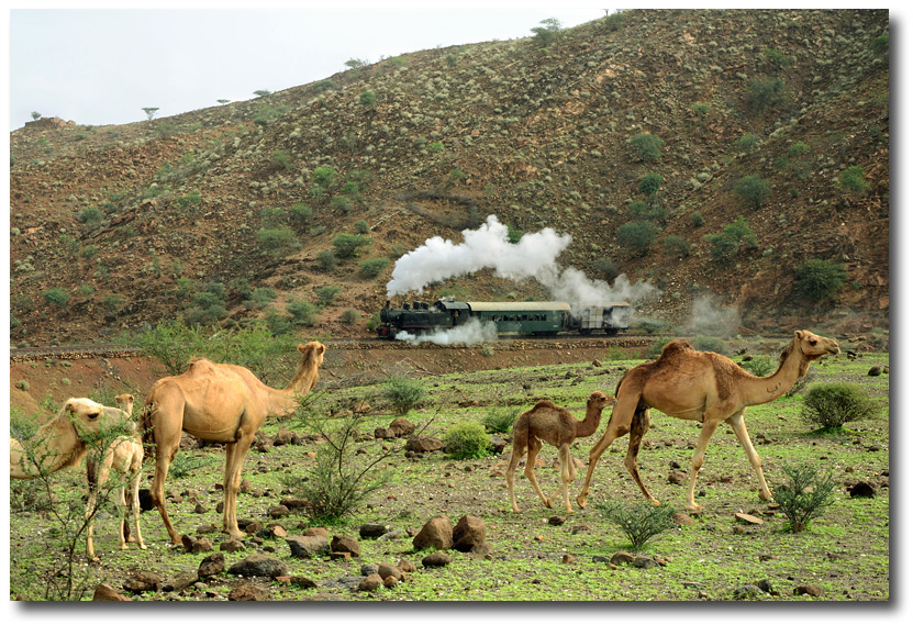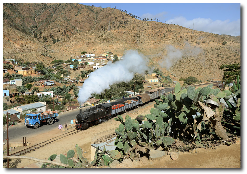 Serpentinenstrasse im Schrittempo sich Richtung Asmara hoch quält, folgt der Dampfzug